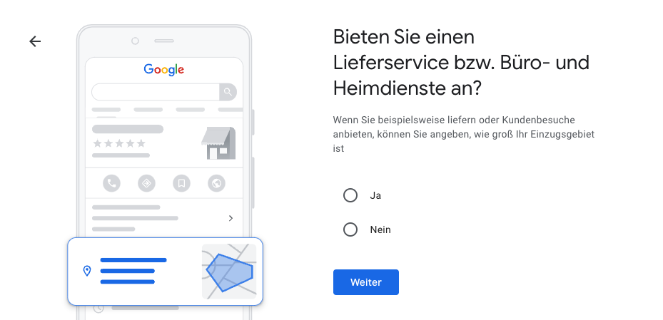 Hier müssen Sie immer "Ja" anklicken. Andernfalls wird Ihr Unternehmen nicht als Google Business Eintrag angezeigt. ❗