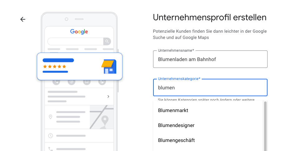 Wählen Sie die Kategorie so genau wie möglich aus. Google wird Ihr Unternehmen nur für Suchen in dieser Kategorie anzeigen. 🏷️