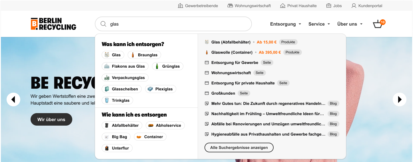 We have successfully released most of the concepts with the new Abfall ABC page as a main source of information about the waste materials that can be disposed of, a smarter search feature equipped with AI, and new data relations between waste categories, waste materials, and their disposal solutions.