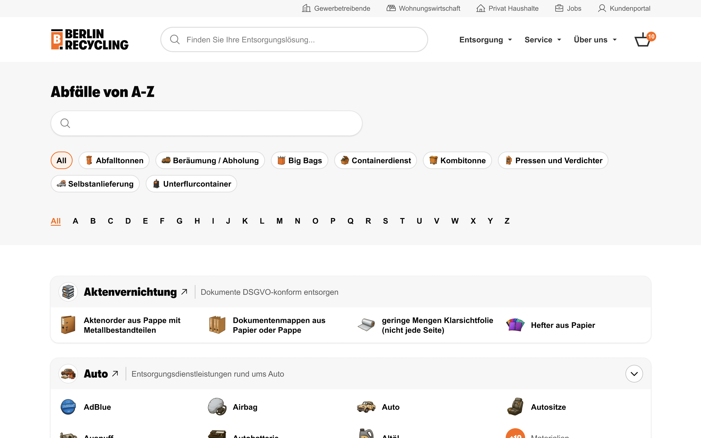 Zur WebsiteWe propose many new concepts for the new website: simpler flow for ordering products, data structure & relation, master page with a complete list of waste material, improved search bar, etc.